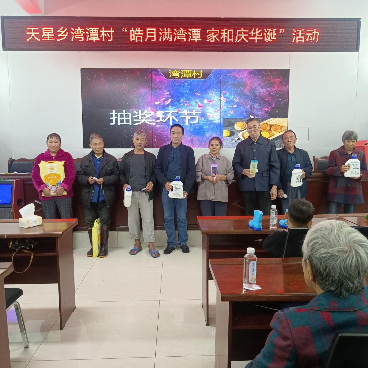 近日,天星乡湾潭村驻村工作队、湾潭村支部委员会联合举办“皓月满湾潭 家和庆华诞”主题活动,与村民们一起吃月饼、话家常,共享美食、共叙团圆。