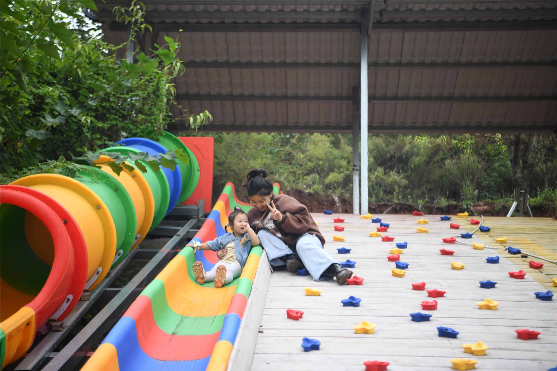 “这次趁着国庆假期,专门带着娃儿来体验一下乡村游,这里的游乐设施亲子互动性都比较强,大人小孩都耍得开心,空气也很清新,耍起很惬意,很悠闲。”游客邱先生说。