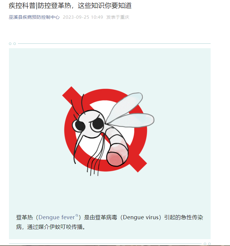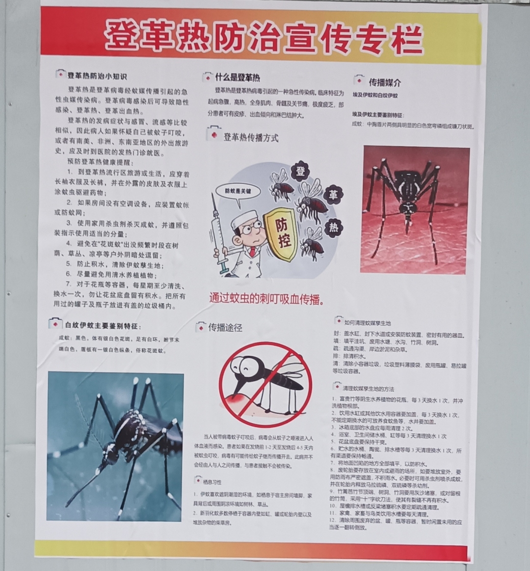 利用“两微一端”、健康教育宣传专栏、宣传单等载体,加强虫媒传染病防治宣传引导,提升群众卫生防病意识和防病能力,统一开展灭蚊、灭鼠行动,从源头上降低病媒生物密度。