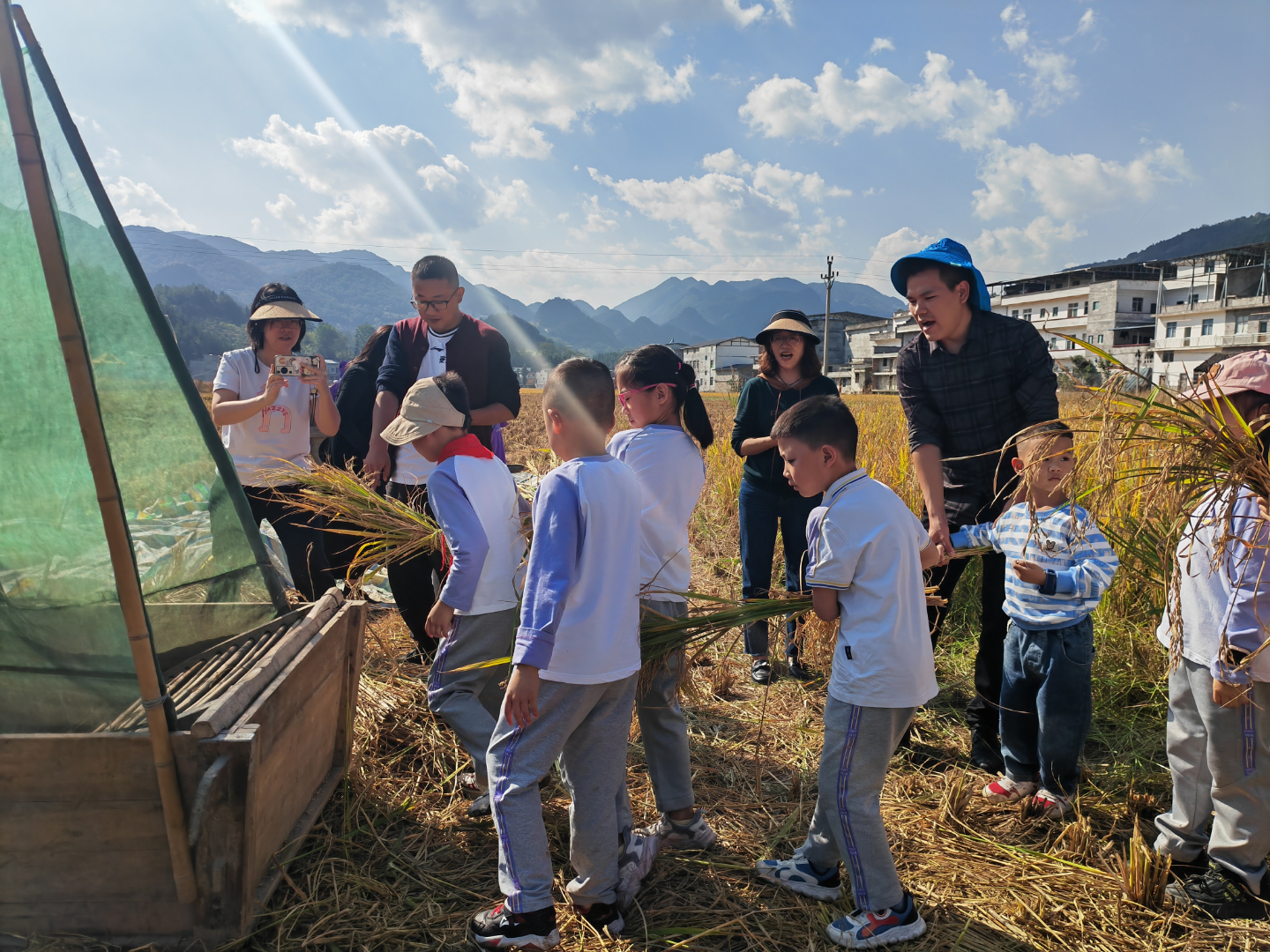 ●巫溪县珠海实验小学学生们体验收割稻谷