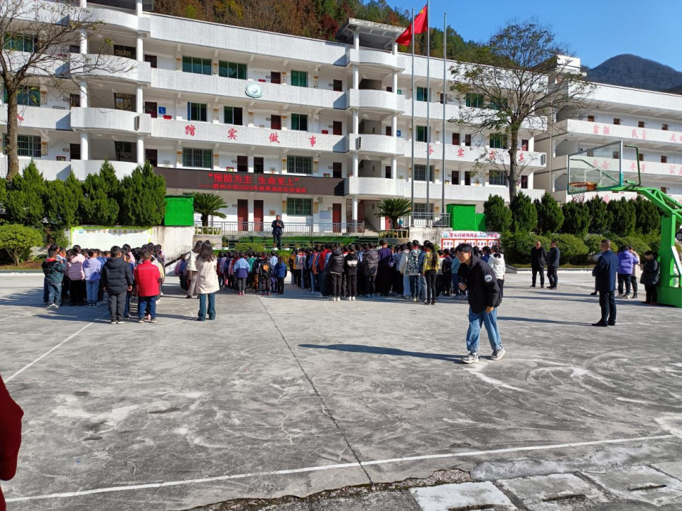 11月21日,胜利小学联合胜利乡应急办开展消防安全应急疏散演练。