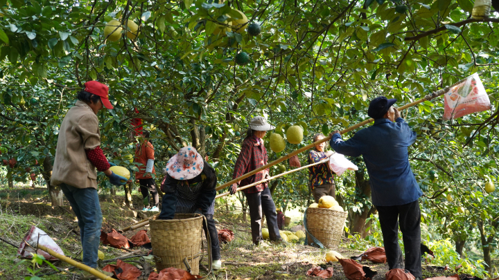 村民正在采摘红心柚