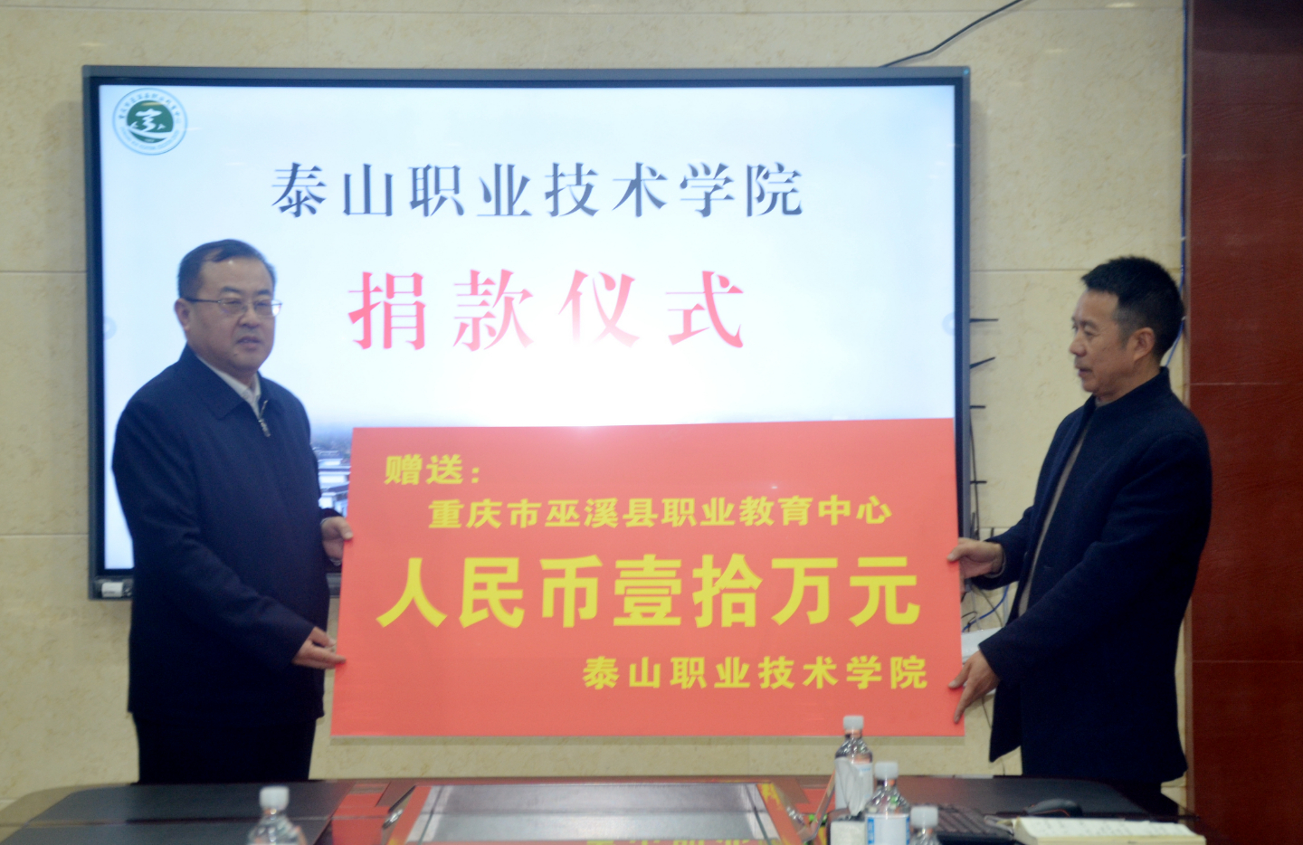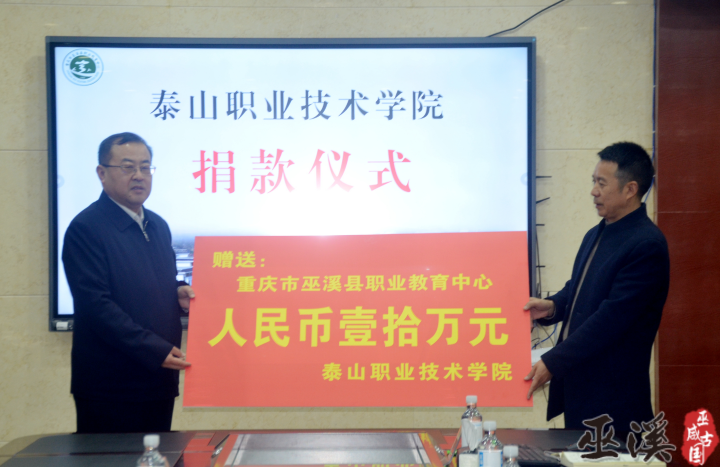 会后,双方签订了合作协议。泰山职业技术学院为巫溪职教中心捐赠了10万元资金,用以发展巫溪职业教育。