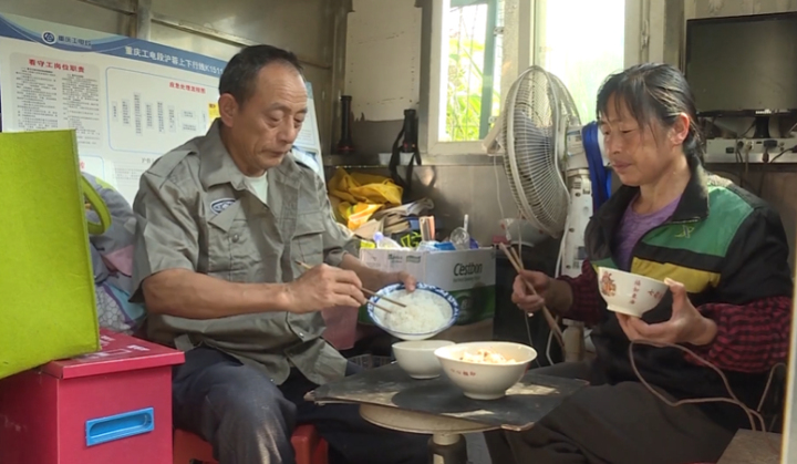 每天高强度的工作,几个月下来,廖小城瘦了十多斤。妻子看在眼里,急在心里。虽然反对丈夫干护路工作,但因为心疼丈夫,妻子陶春秀最终也辞去了学校食堂的工作,与廖小城一同站上了岗亭。
