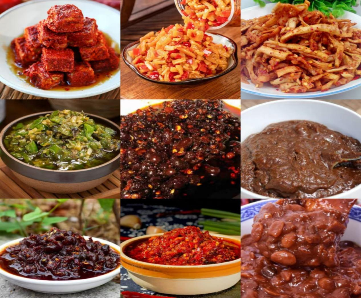 风味特色类、萝卜干类、豆豉类、豆瓣酱类、辣酱类、渣辣子类、霉豆腐类七种类别。