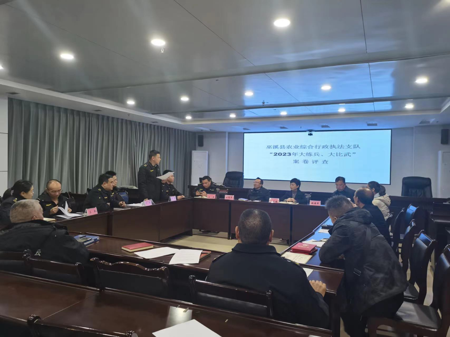 12月11日,县农业综合行政执法支队举办农业执法“大练兵大比武”活动。该支队3个大队分别选派2名队员组队参赛,邀请县农业农村委政策法规科与支队班子成员共同组成评委团,对活动进行裁判。