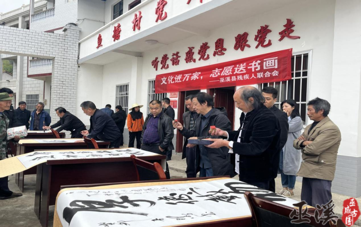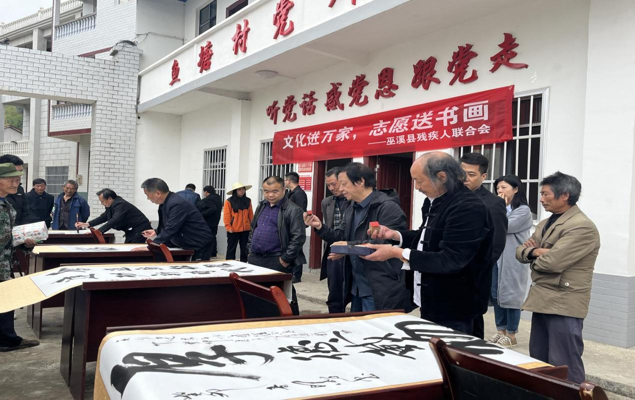 在“残疾人文化周”活动中,县残联邀请了县政协书画院到土城镇鱼塘村开展了一场关送书画下乡的公益活动,并邀请艺术家分享他们的创作经历和感悟,让残疾人感受到了温暖和关怀,也激发了他们的文艺创作热情。