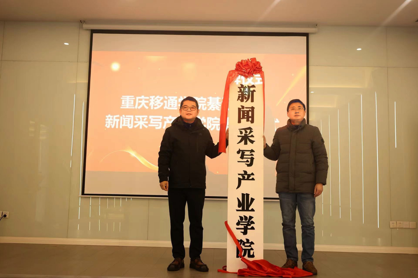 12月21日,重庆移通学院綦江校区“新闻采写产业学院”揭牌仪式举行,该校相关负责人、教师代表、学生代表出席揭牌仪式。