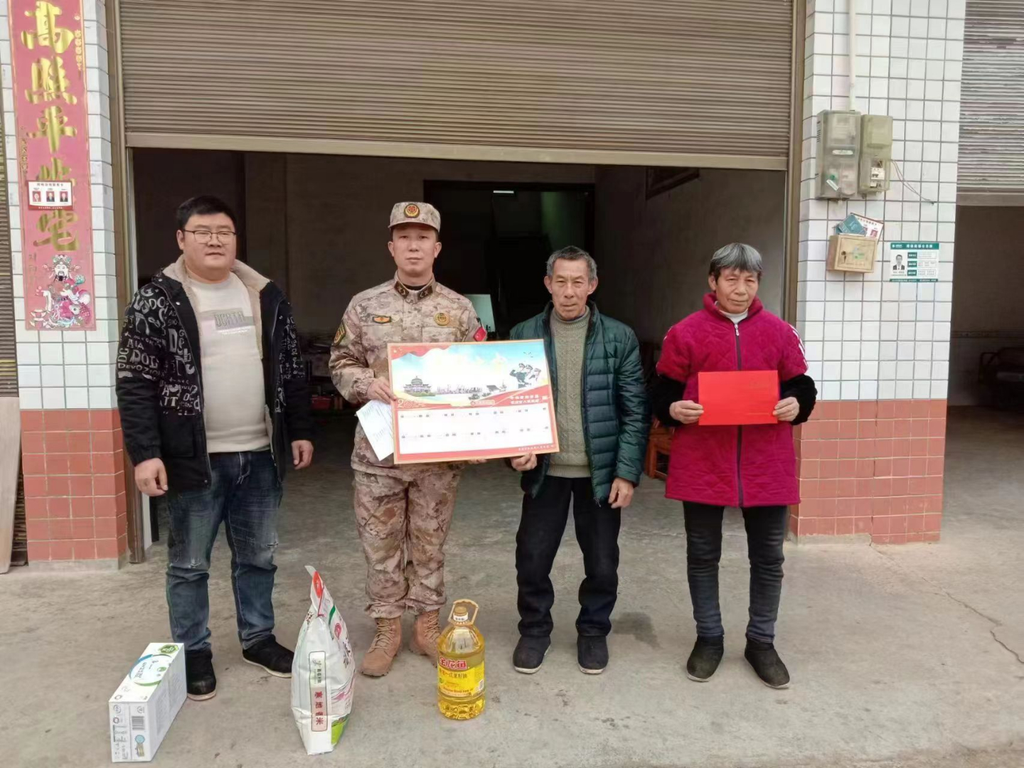 慰问中,工作人员向2023年度入伍新兵军属家庭,送去“光荣之家”光荣牌、年画及生活用品等慰问品,与军属亲切交谈,详细了解新兵在部队服役现实表现,关心了解军属生产生活及身体情况,提醒告知冬天烤火取暖要注意安全、保重好身体,并对军属家庭为部队培养优秀人才表示感谢。同时,鼓励希望杜彭等5名大学毕业生安心服役、刻苦训练、勤奋工作,争取早日在强军事业征程中立新功、传捷报,展现“四有”新时代革命军人的好样子。塘坊村杜彭的爷爷激动地说:“感谢党和政府,作为军人军属家庭我们感到无比的光荣,我一定转告孙子在部队好好干,努力为家乡人民争光”。