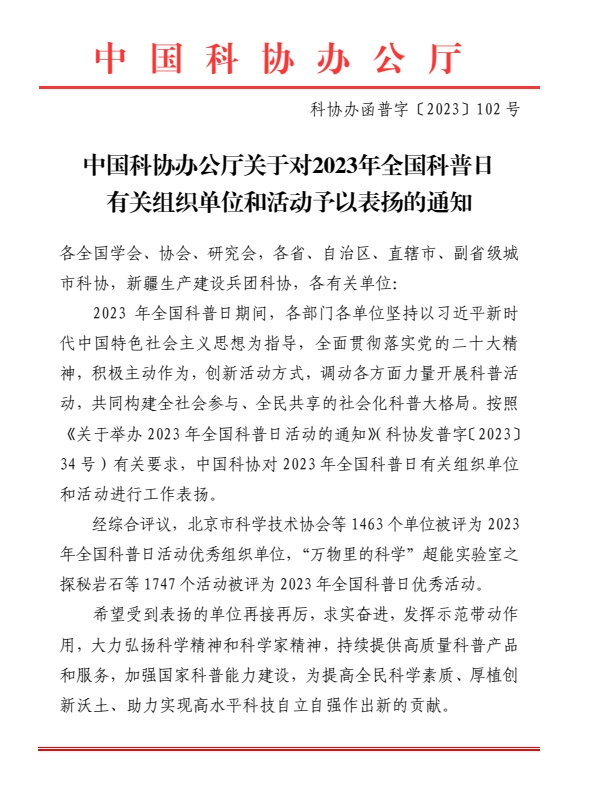 近日,中国科协办公厅印发了《关于对2023年全国科普日有关组织单位和活动予以表扬的通知》,巫溪县科协被重庆市科协表彰优秀组织单位奖1项以及优秀活动奖7项后,此次被中国科协办公厅评为2023 年全国科普日活动优秀组织单位,由巫溪县科协所推荐的2023 年巫溪县水稻机收减损技能比武大赛暨安全操作培训被评为2023 年全国科普日优秀活动。