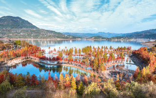 汉丰湖彩林层林尽染、色彩斑斓。 记者 王晓宇 摄