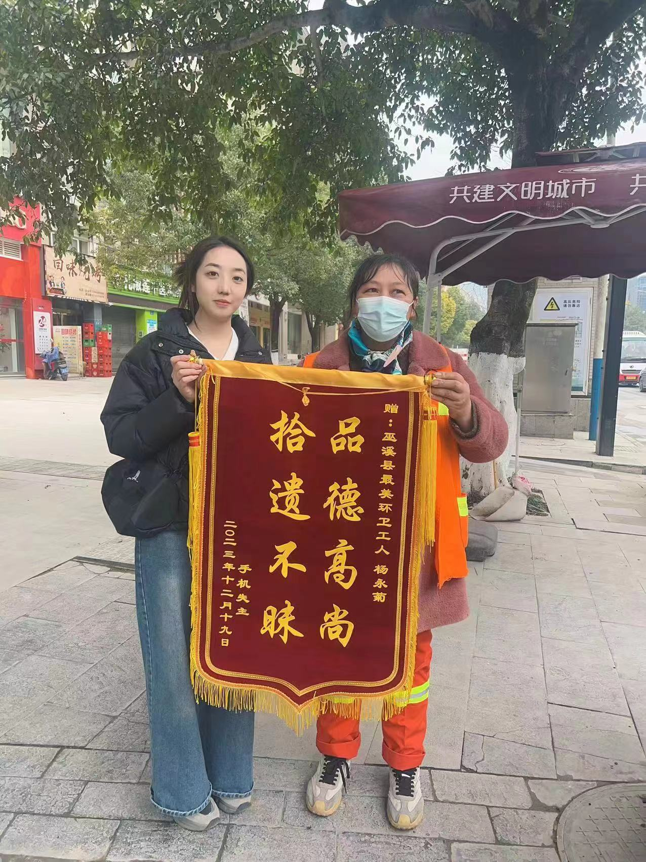 近日,一面写着“拾遗不昧 品德高尚”字样的锦旗被送到了县环境卫生管理所环卫工人杨永菊的手中,这是怎么一回事呢?