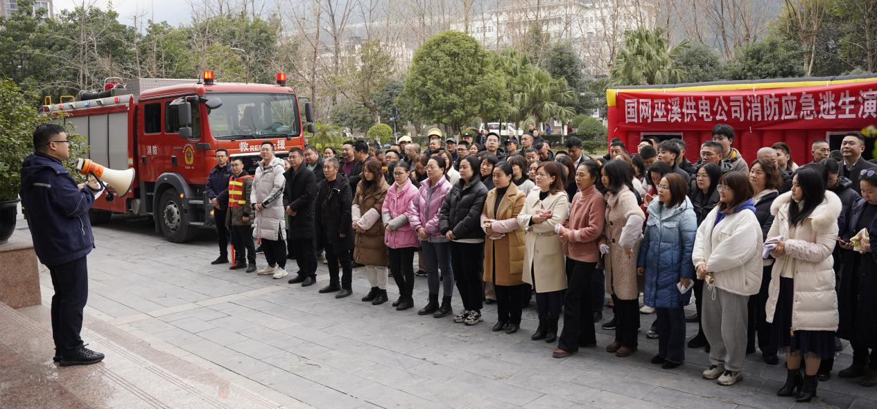 1月10日,国网巫溪供电公司联合县消防应急救援大队开展火灾逃生疏散、灭火应急演练,公司领导及全体在岗职工参与演练。