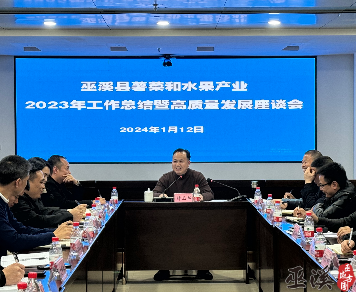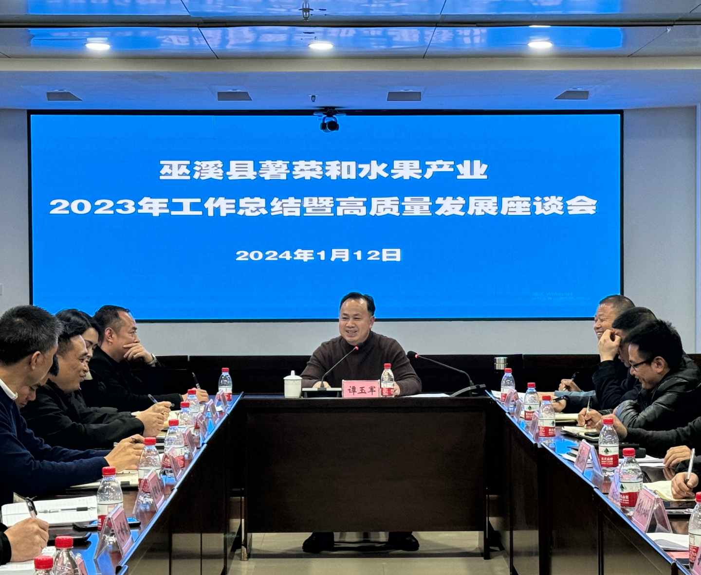 近日,巫溪县薯菜和水果产业 2023 年工作总结暨高质量发展座谈会在县农业农村委召开,县政协副主席、县薯菜和水果产业发展指挥部指挥长谭玉军参加。