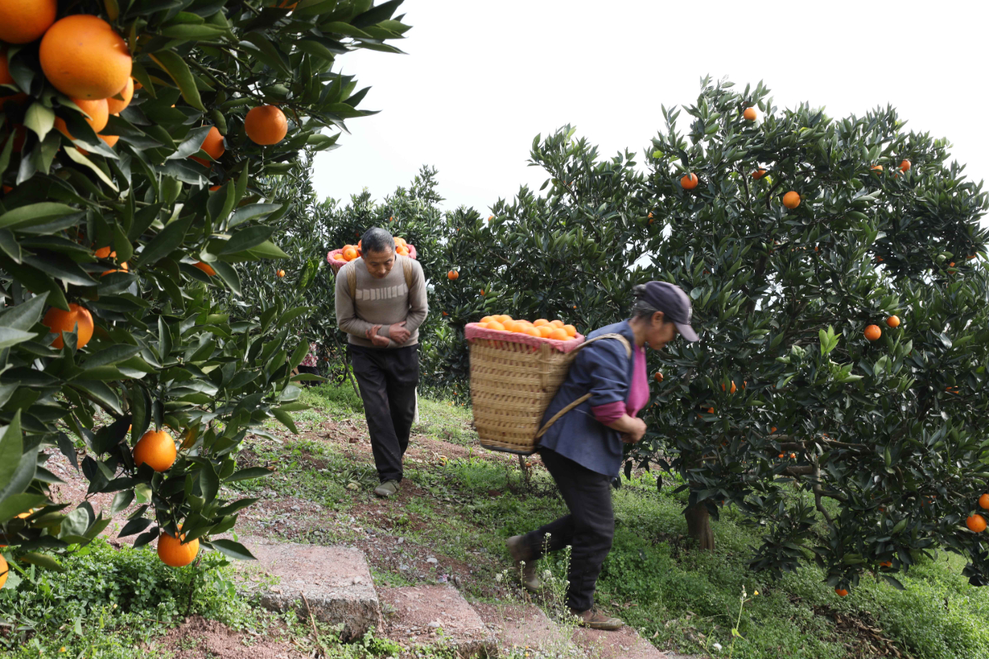 现在,一辆辆大卡车开进了小村庄,一筐筐柑橘被打包、装箱、上车,果农们也看到了希望。