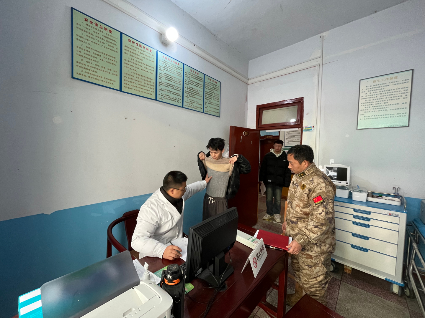本次初审初检分为交流座谈和现场审查两个阶段进行。座谈会上,镇武装部部长围绕国家战略、应征优待政策等,向参检青年进行了详细讲解宣传,进一步了解掌握青年们的参军意愿,并对他们提出殷切期望。工作人员对应征青年的身份信息和学历情况进行严格审查登记。会后,按照征兵体检标准和要求,在下堡卫生院依次对应征青年身高、体重、视力、外科等项目进行检查测试,整个过程组织有序、过程严谨、记录详实。
