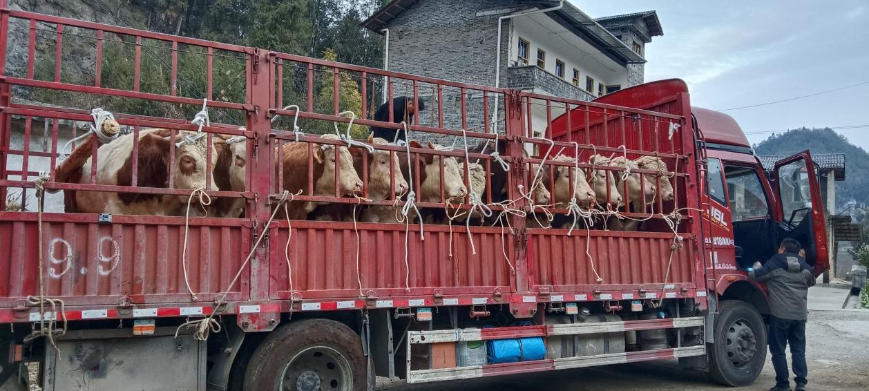 “今年我们存栏的肉牛已经全部售出了,送完这些肉牛到主城,工人们都可以放假过新年啦。”大泉村支部书记汪孝龙高兴地说道。一头头膘肥体状的肉牛在饲养员的驱赶下装上了运输车,大家脸上洋溢着喜悦的笑容。