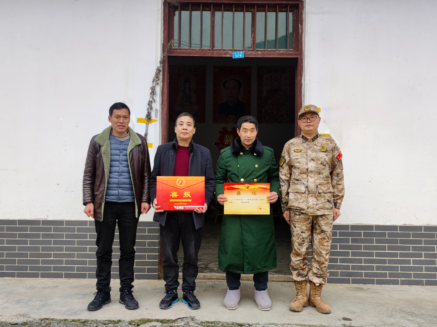 1月31日,峰灵镇退役军人服务站联合镇武装部、村级退役军人服务站组成送喜报小组,向峰灵镇4名荣获“四有”优秀士兵荣誉称号的现役军人家属送喜报。
