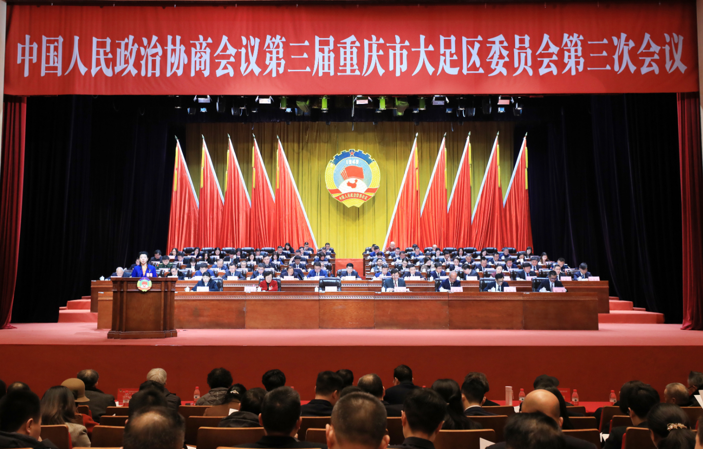 掌上大足讯(记者 陈龙 张琦 余佳)昌州大地舞火龙,海棠香国展新颜。2月3日,中国人民政治协商会议第三届重庆市大足区委员会第三次会议在大足区文化艺术中心隆重开幕。
