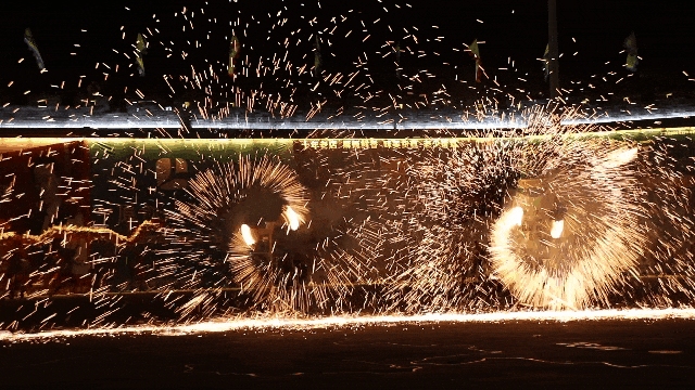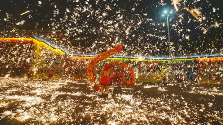 滚烫的铁水经由表演者们有力又巧妙地击打