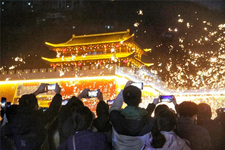 “每天晚上我们都蹲守在这里,就为了拍铁花,非常出片,当铁花进入镜头的时候,我希望捕捉到每个角度的美丽。”摄影爱好者周先生表示,每天都和同伴一起准时来到张飞庙,只为定格铁花绚丽的一瞬。