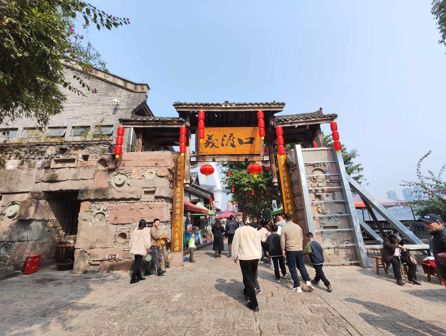 2月12日,阳光明媚,义渡古镇里游人如潮,当天,“‘花式’逛古镇 ‘龙’重过大年”活动在这儿举行,游客们体验了满满的年味儿。