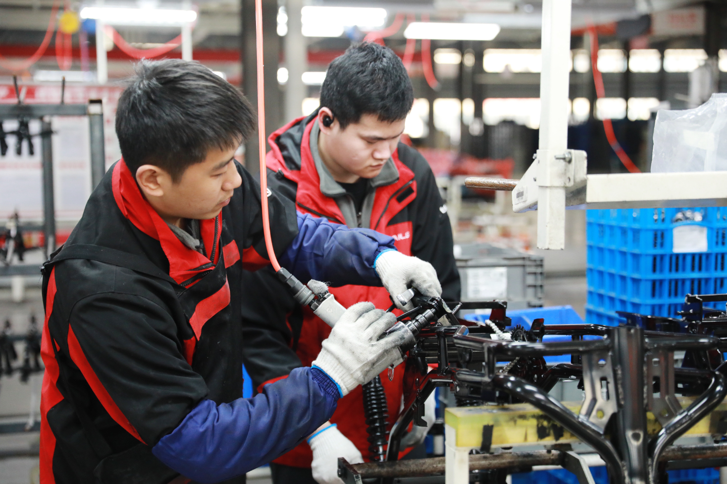 “节后,我们的订单十分火爆,仅摩托车前叉配件就有8万套,后减配件有6万套。目前,为赶订单、保交付车间内的6条生产线已全部启动,每天要生产后减配件2500套、前叉配件2200套、连板配件2500个。”宇嘉新能源总经理张建光说:“同时,2月底,我们还将从深圳引进多台前叉自动打螺栓机,以减轻工人的劳动强度,进一步确保产品质量。”