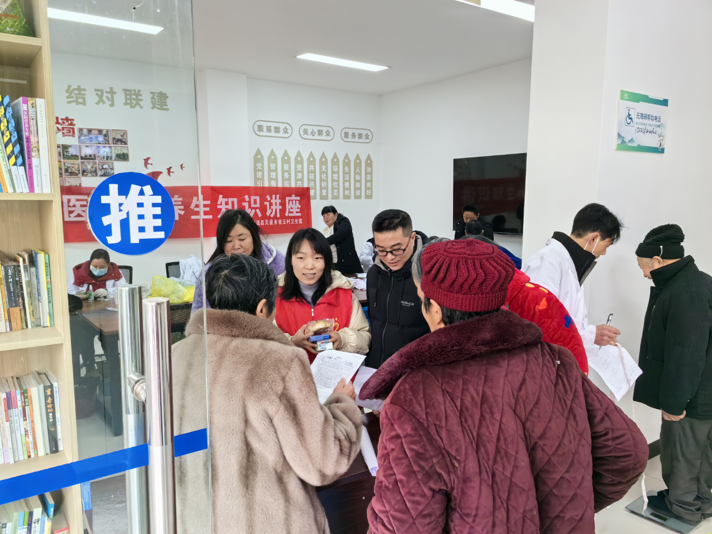 2月29日,天星乡联合乡卫生院到吉王村、双源村为30余名65岁以上老年人免费体检。
