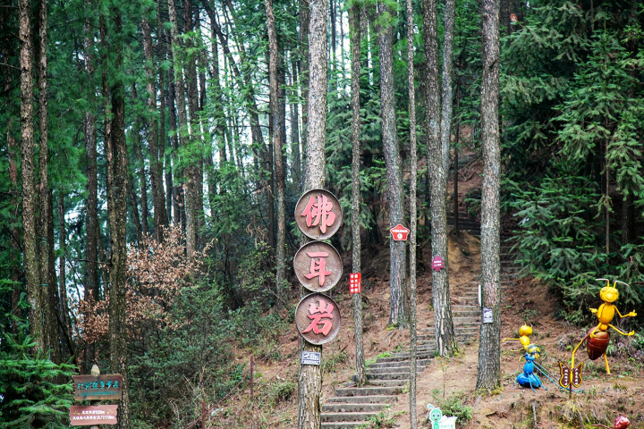 佛耳岩位于黄金镇境内的大岭山之巅,最高海拔1100米,平均气温比忠州城低6至8摄氏度,享有“天然氧吧”之美誉。这里植被繁茂、气候宜人,春天可赏花,夏天可纳凉,秋天可品果,冬天可观雪,是忠县知名的休闲纳凉景区。