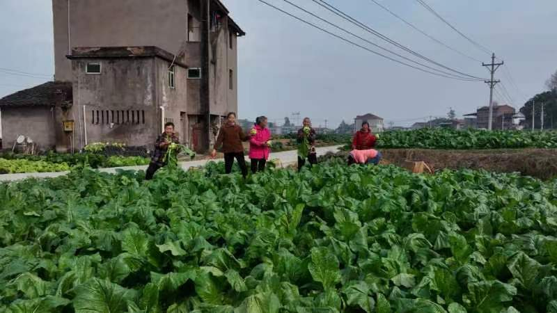 在拔山镇石联社区村榨菜基地,一排排翠绿鲜嫩的青菜长势喜人,形态饱满。村民趁着晴好天气抓紧采收,削根、去叶……大家分工明细,动作娴熟,田间地头一派忙碌,丰收喜悦洋溢在每个人脸上。