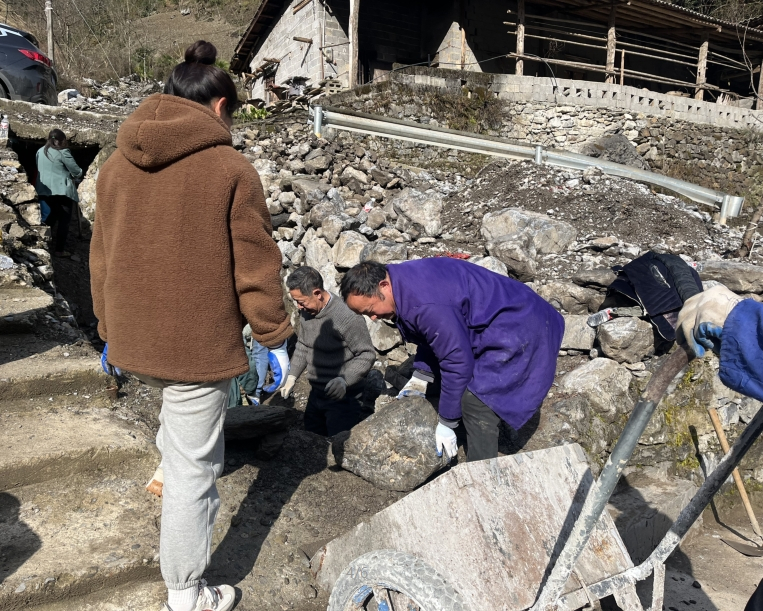 “排水沟里面全部被石头和淤泥堵塞,我虽然岁数大了,但这是我的家,我也要出一份力,老也有所为嘛。”77岁的老人肖堂明边运石头边说到。