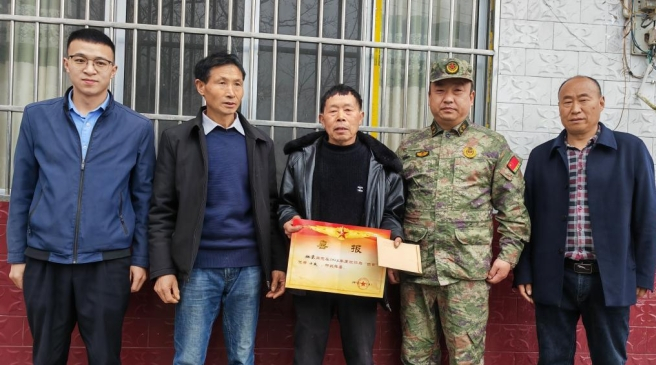 4月2日,朝阳镇退役军人服务站联合镇武装部为现役军人家属送去“四有士兵”喜报。