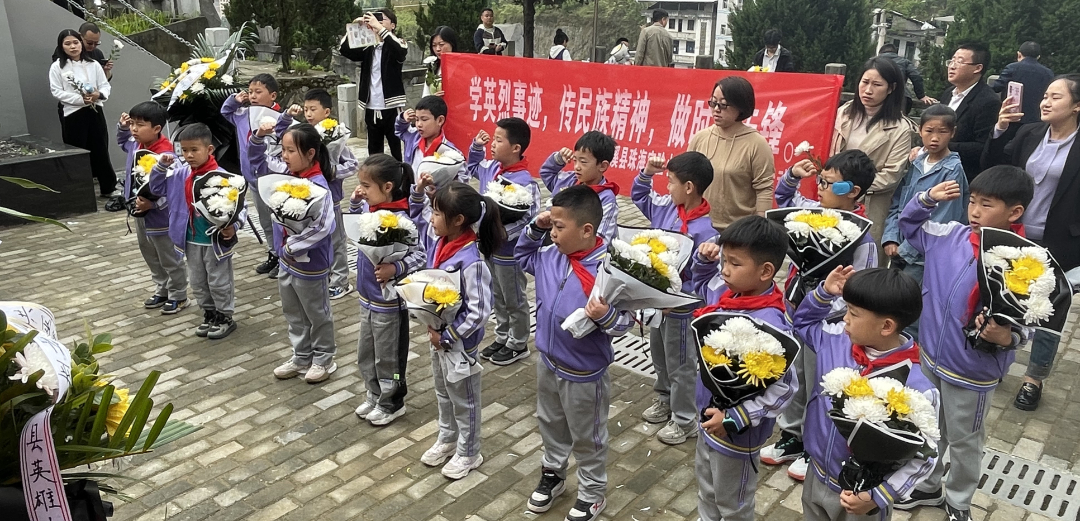 4月3日,古路镇党委政府联合县退役军人事务局、辖区部分村(社区)、古路中心小学校在龙坪村李明安烈士墓前开展以“2024·铸魂·清明祭英烈”为主题的清明节英烈祭扫活动。(通讯员 向雪)