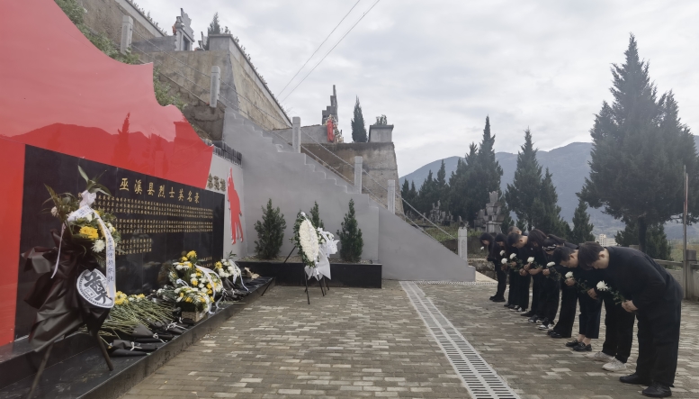 4月3日,国网重庆巫溪供电公司组织党员、团员来到巫溪县文峰镇鞍子山彭咏梧阵亡地纪念园开展“清明祭英烈”红色教育活动,缅怀革命先烈,弘扬革命精神。(通讯员 李实鲜 汤和平)
