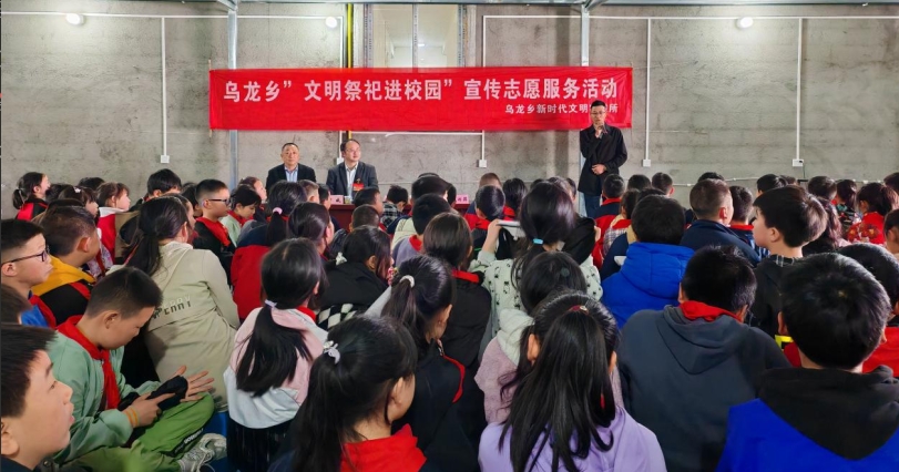 4月2日,乌龙乡到乌龙小学开展“文明祭祀进校园”宣讲志愿服务活动。(通讯员 熊欣)