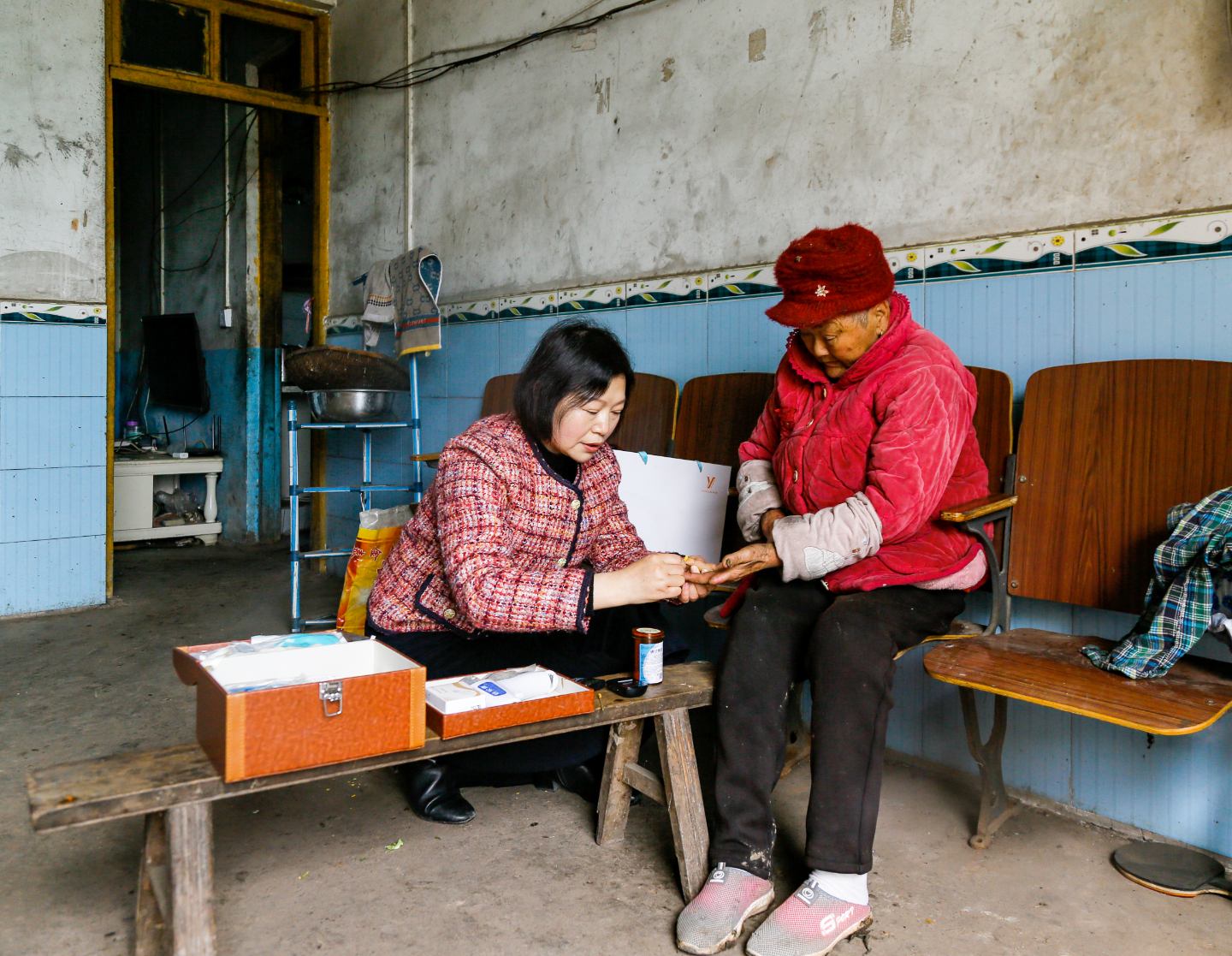 闲下来的全凤英喜欢在村里四处转转,有次路过郑发慈老人家院坝时,72岁的老人大冬天光脚穿着胶鞋,一双鞋也沾满了污泥。“婆婆,这么冷的天,你怎么不穿双袜子?”听见全凤英的询问,老人脱下鞋子。只见她右脚肿胀不堪,脚背上伤口处还有黄色的液体流出。她告诉全凤英,前几天脚被烫伤,没想到现在肿成这样,准备等它自己慢慢好。全凤英严肃的说:“你这样肯定不行!”她赶忙回办公室拿来医疗箱。