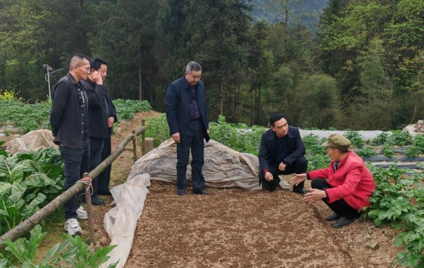 在尖山镇八佳村,几位农户正在熟练地进行金花葵田间育苗管理,一株株花苗在养分充足、温暖湿润的环境中茁壮成长,长势喜人,育苗棚里生机勃发。尖山镇主要负责人与农技专家一行向农户宣传着金花葵种植技术要点和政策保障,鼓励群众大力发展金花葵产业经营,增强增收致富的信心。