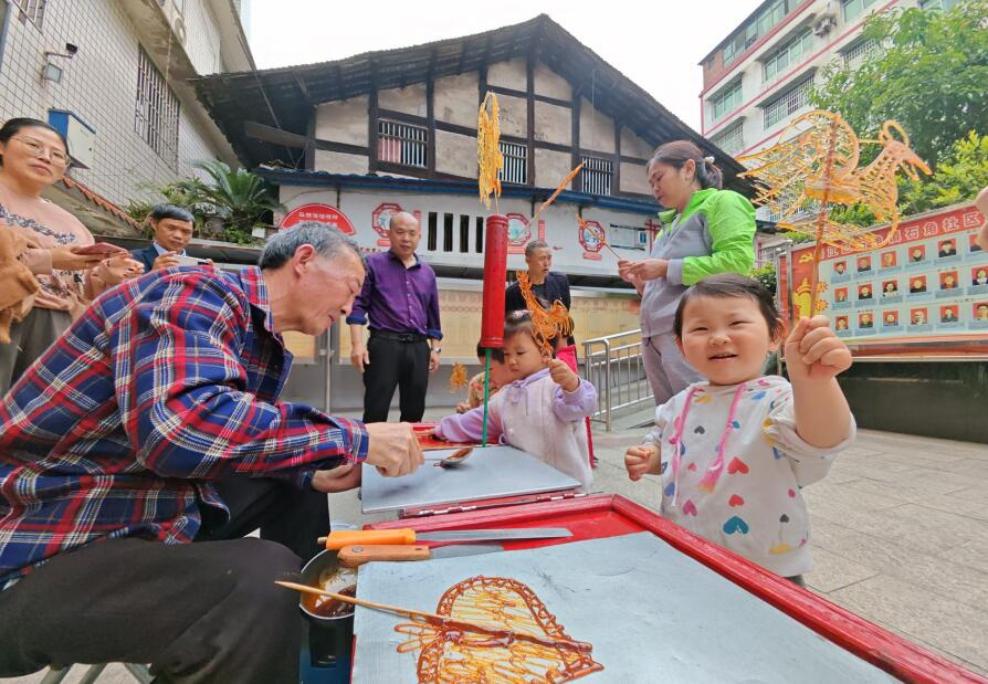 糖画是一种融合了艺术、文化,具有实用性和观赏性一体的独特手工艺品。“石角糖画”由陈氏家族传承,如今已传承了四代。作为传统美术,“石角糖画”被评为綦江区第六批区级非物质文化遗产。