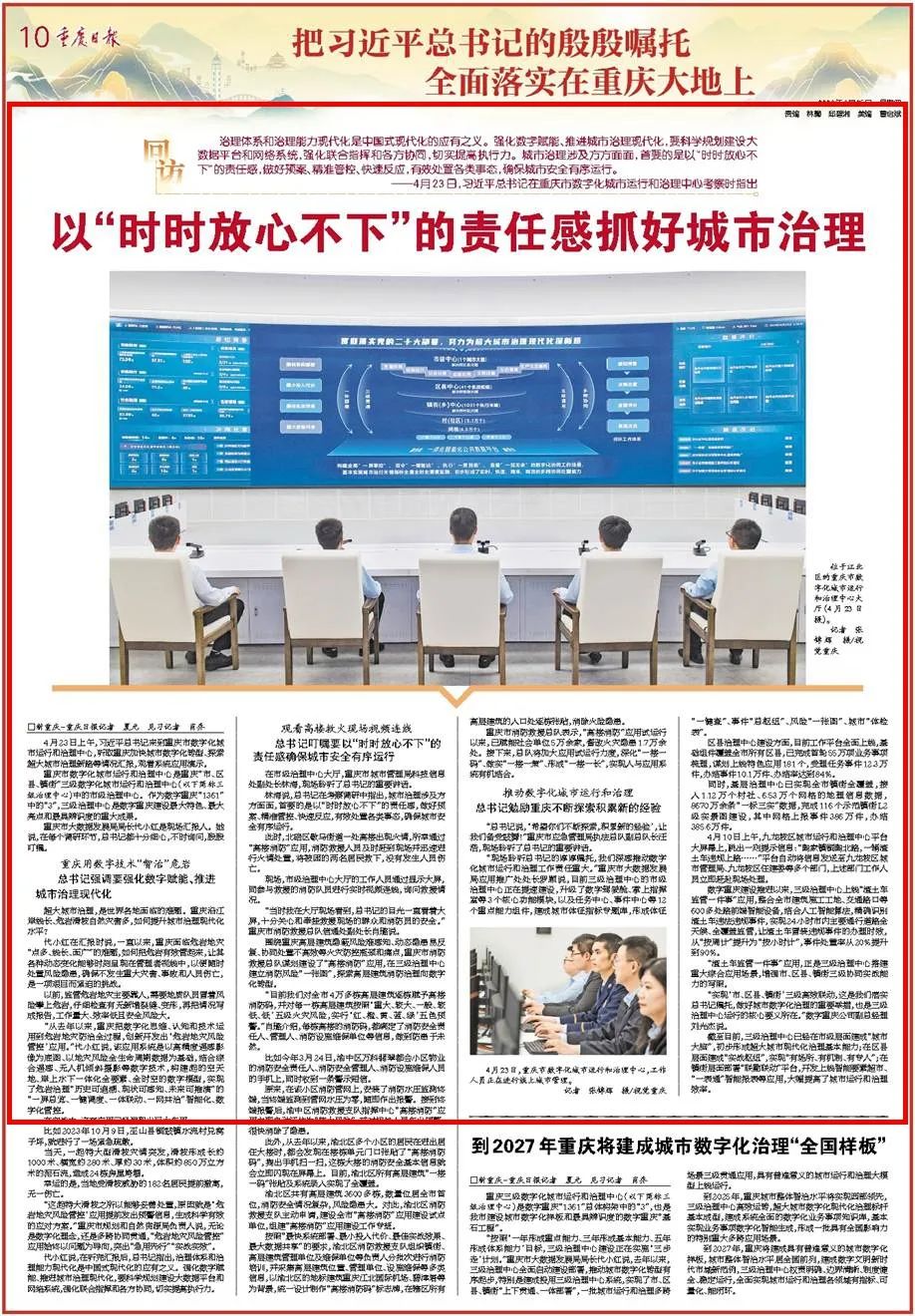——4月23日,习近平总书记在重庆市数字化城市运行和治理中心考察时指出