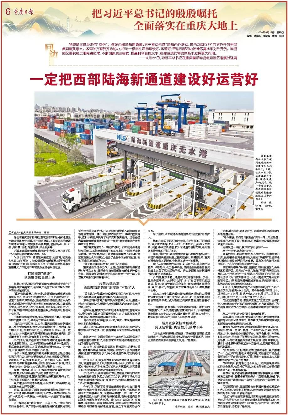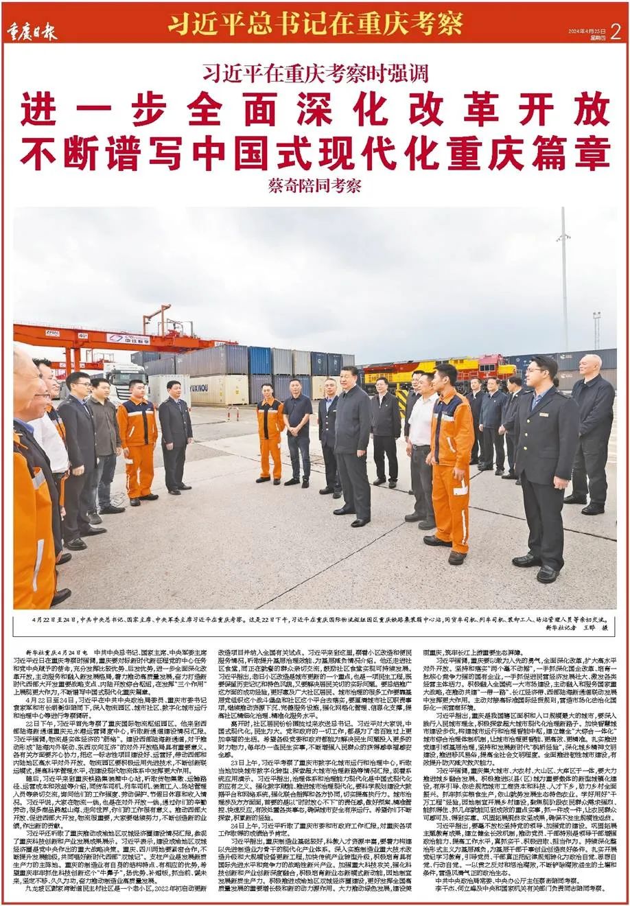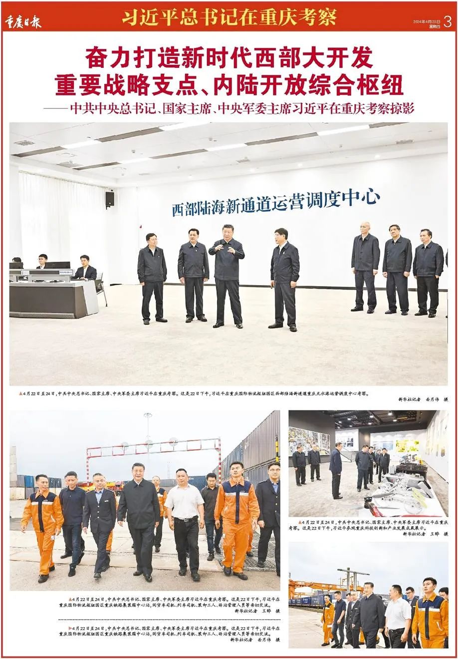 ——4月22日,习近平总书记在重庆国际物流枢纽园区考察时强调