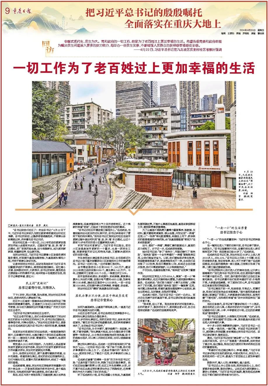 ——4月22日,习近平总书记在九龙坡区民主村社区考察时强调