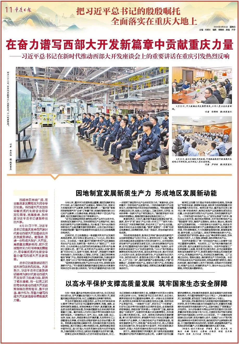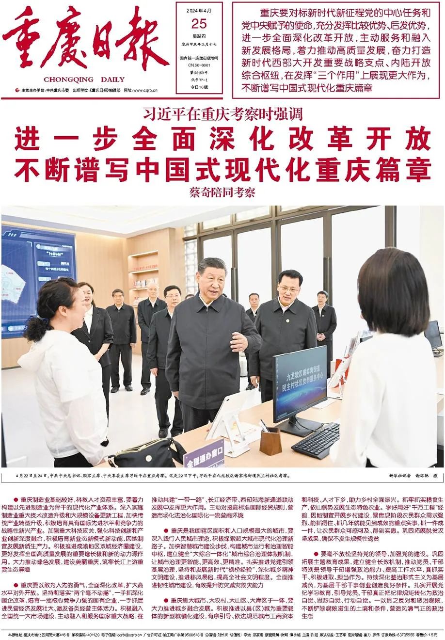 ——4月24日,习近平总书记听取重庆市委和市政府工作汇报时指出