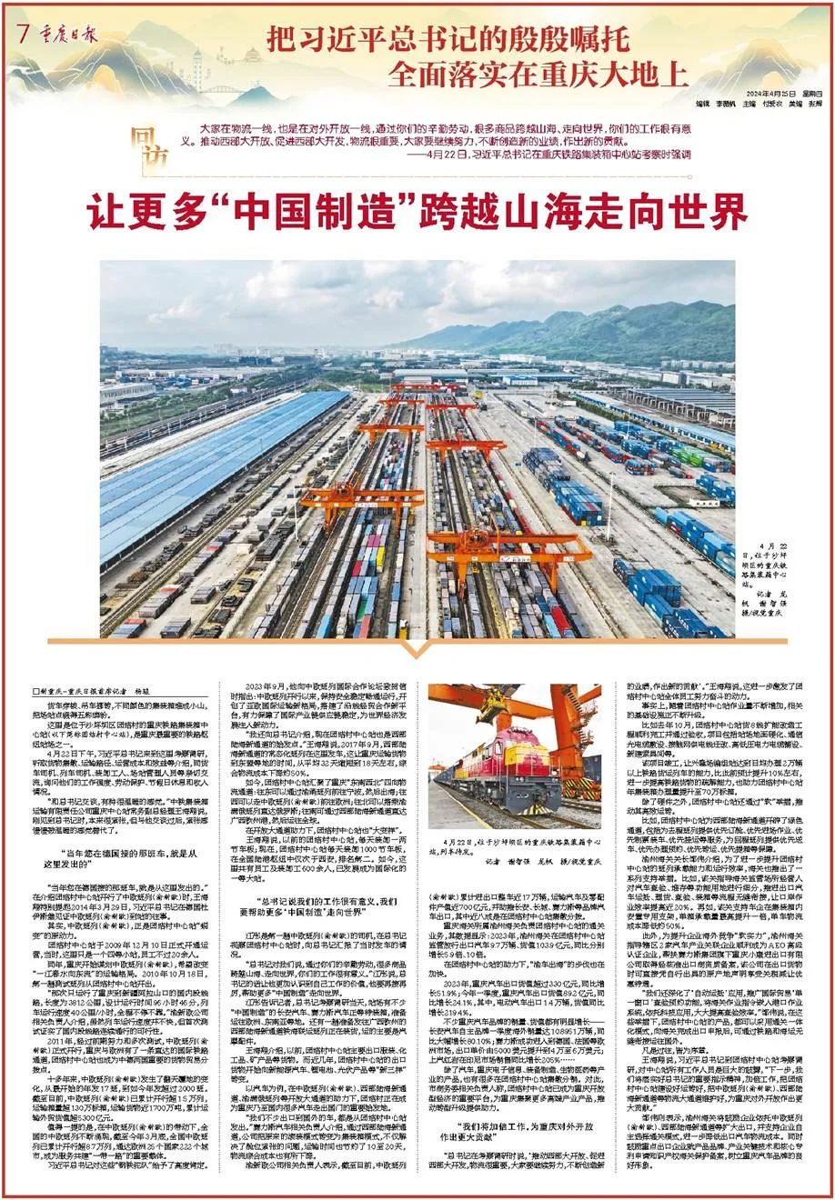 ——4月22日,习近平总书记在重庆铁路集装箱中心站考察时强调