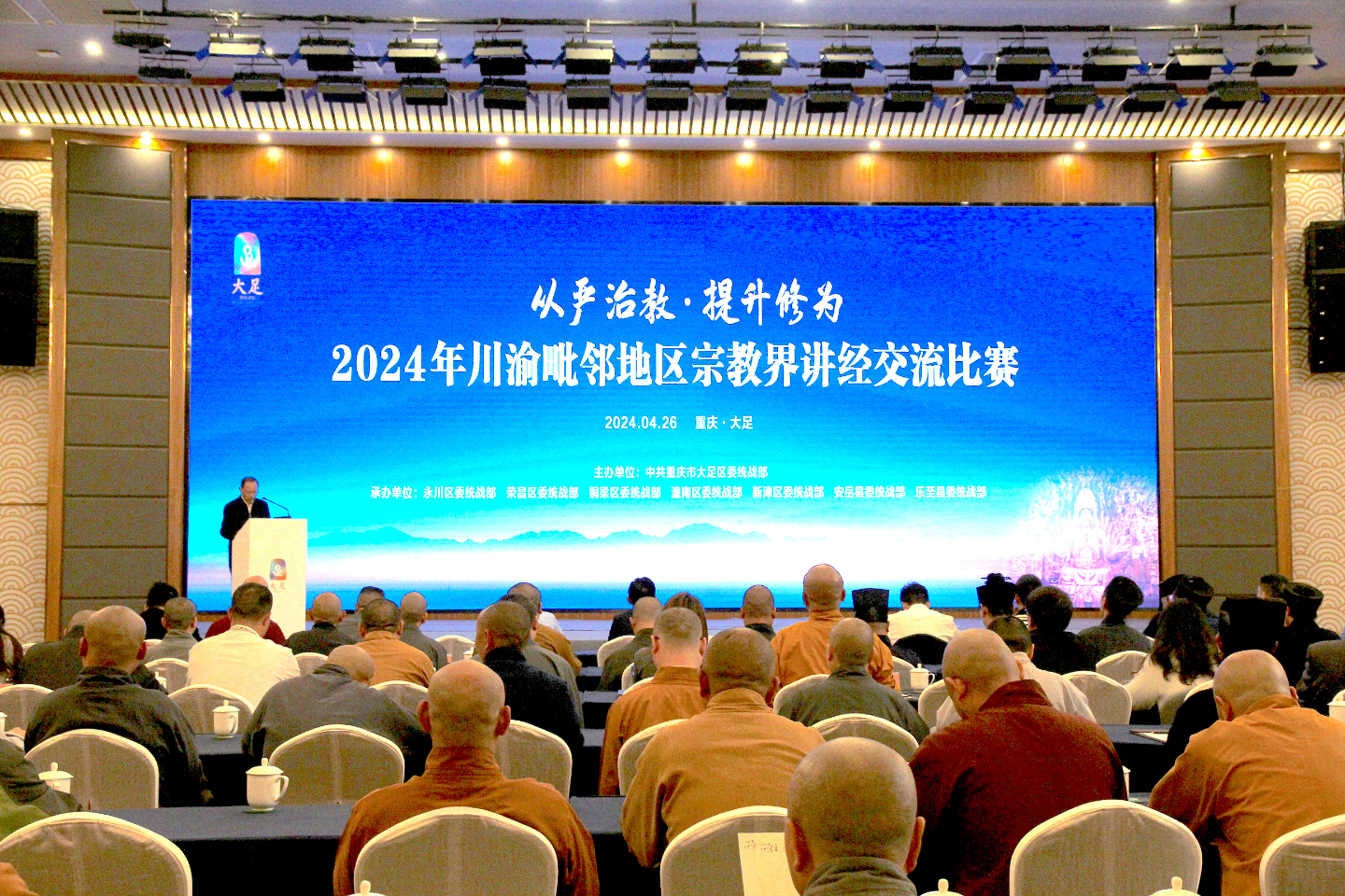 掌上大足讯(记者 何美林 实习生 彭茜 通讯员 谢琨)4月25日至26日,由中共重庆市大足区委统战部主办的川渝毗邻地区宗教界全面从严治教讲经交流活动在大足区举办。大足区委常委、统战部部长陈建华,安岳县委常委、统战部部长尹凤全,永川区、荣昌区、铜梁区、潼南区、成都市新津区、资阳市安岳县、资阳市乐至县等地的民族宗教委(民宗局)负责人出席活动,50余宗教团体代表人士现场观摩。
