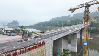 石宝寨复线大桥全长225.5米,桥面宽度为12.25米,包括双车行道、人行道和防撞护栏等,是忠石沿江旅游公路控制性工程之一。在建设过程中,忠县畅达建设投资有限公司精心调度,抢抓涉水工程进度,在2022年三峡水库蓄水至175米之前完成既定施工目标任务,确保了项目建设总体进度平稳有序。