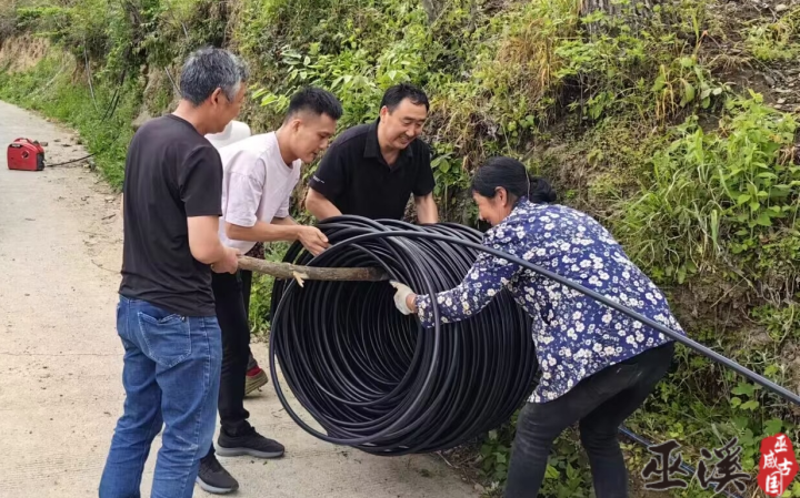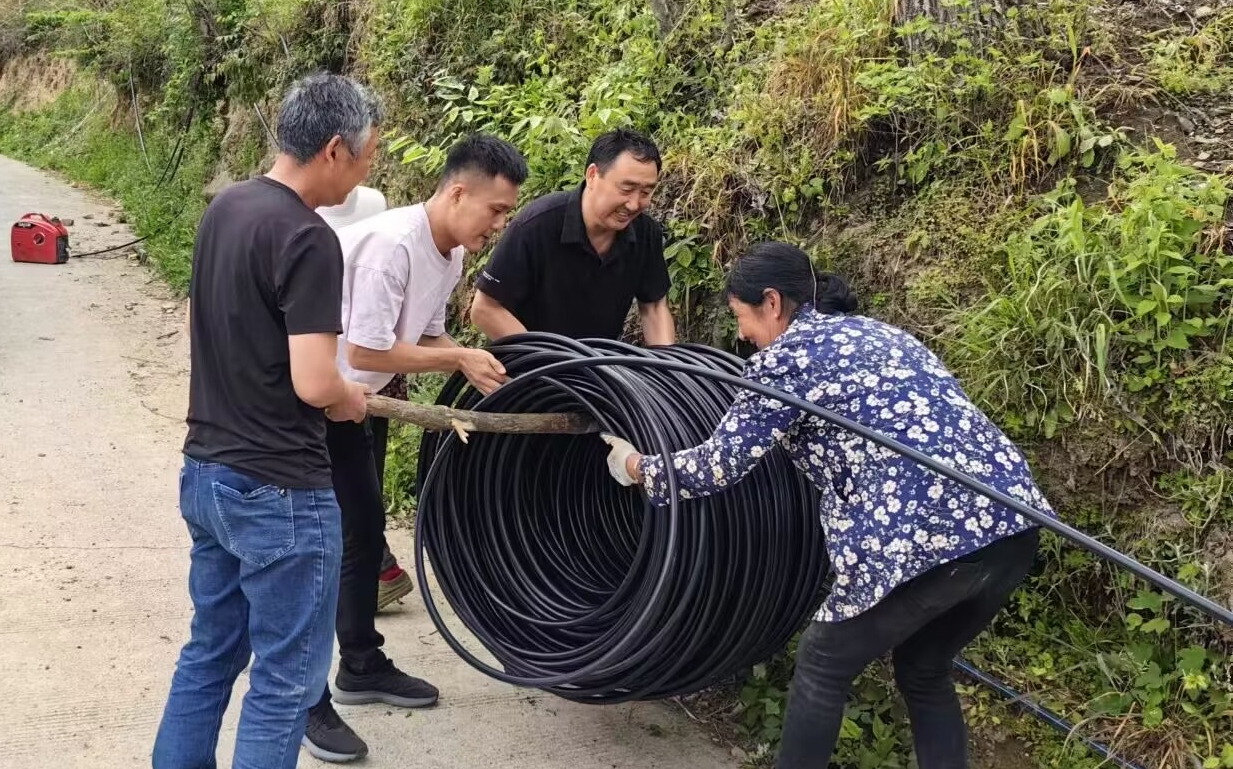 驻村工作队走访时发现问题,详细了解情况后,立即联系附近村社了解水管分布情况和蓄水池地理位置,经过实地勘察,驻村工作队和村支两委决定从隔壁马塘村蓄水池就近引水。为节约恢复饮水时间,工作队驾车前往县城采购回水管及零件、同时协助调运来发电机等必备工具,组织人力架设管道。