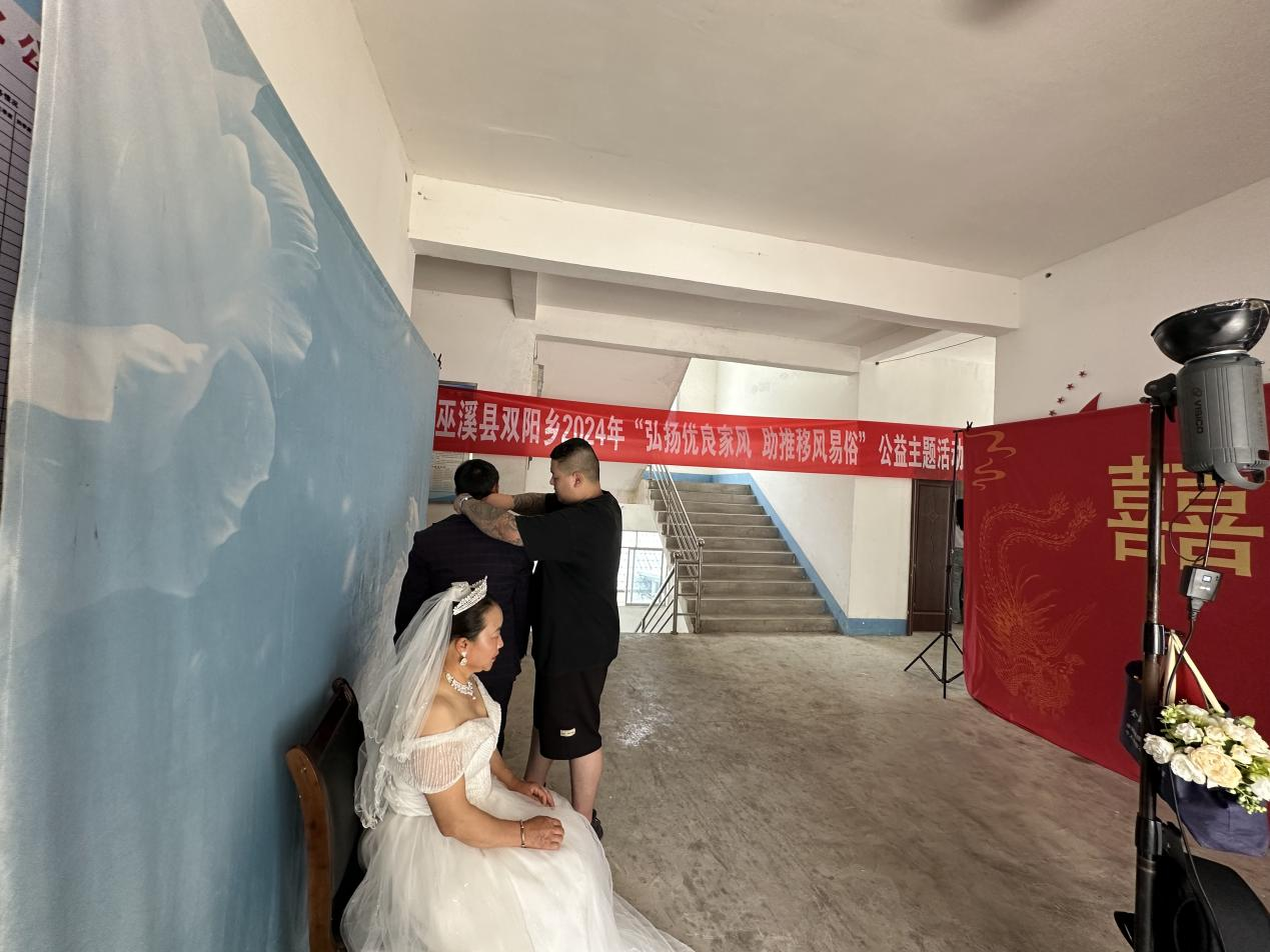 此次活动由承办单位组织专业摄影师、化妆师成立公益性志愿队伍,赴双阳村、七龙村、白果村、马塘村等4个村,为26户(52对夫妻)免费拍摄婚纱纪念照。