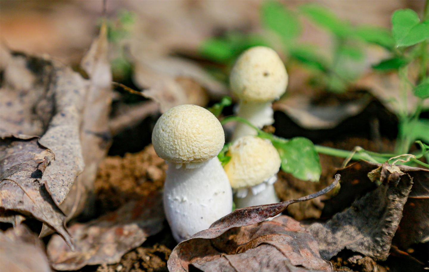 随着天气回暖,3月12日,金松茸长出了菌丝;3月28日,金松茸探出了“脑袋”。