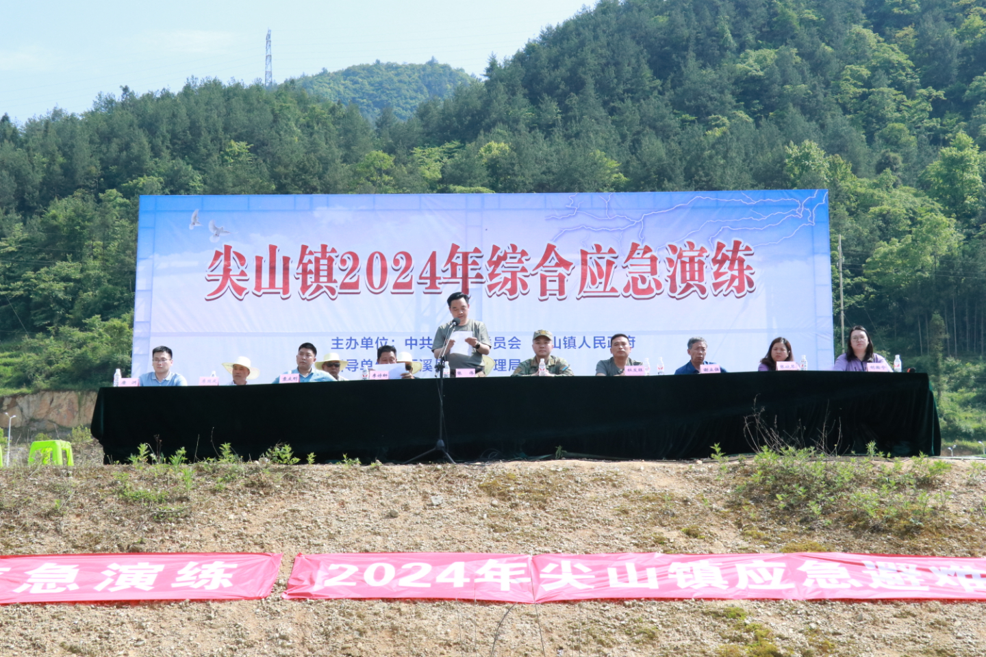 下午3时,随着演练总指挥一声令下,演练正式拉开帷幕。此次演练以尖山镇突发4.8级地震为背景,模拟受地震影响出现险情后,尖山镇立即启动自然灾害应急预案。指挥部下设的医疗救治点、灾民安置点、后勤保障队、应急抢险队、预警转移队迅速行动。