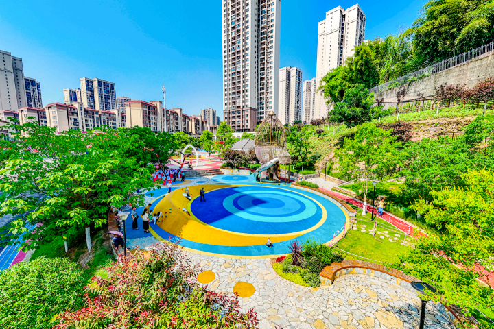 在大渡口区五厂路和兴通路交界处,一座以张之洞的别号“香涛”命名的“口袋公园”——香涛公园,如今成为居民观江赏景、休闲娱乐的新“打卡地”。公园总面积约14000平方米,以乡野风格主题进行布局打造,增添了适合不同人群的便民游乐设施,让游客和居民实现游园兼具观赏与休闲于一体的人居环境。